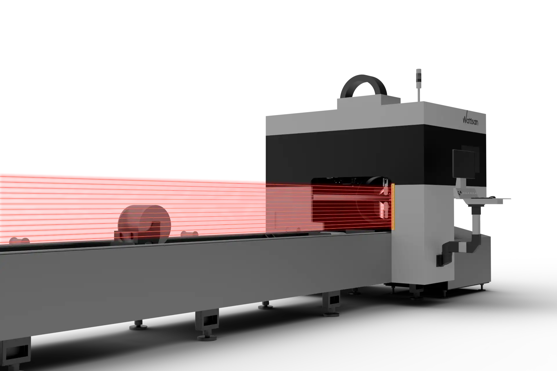 半自动侧向管材送料机可同时容纳 5 个工件。管材通过链条送料(较轻的管材)或轨道送料(重达 1500 公斤的管材)送入切割区。